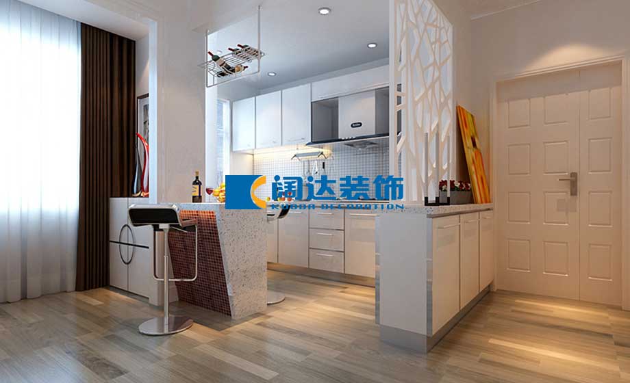 廚房:廚房設置為半開放式現代廚房,增加入戶玄關采光,并且小吧臺的設計,增加了整體空間的小資情節。同風格案例:更多>>