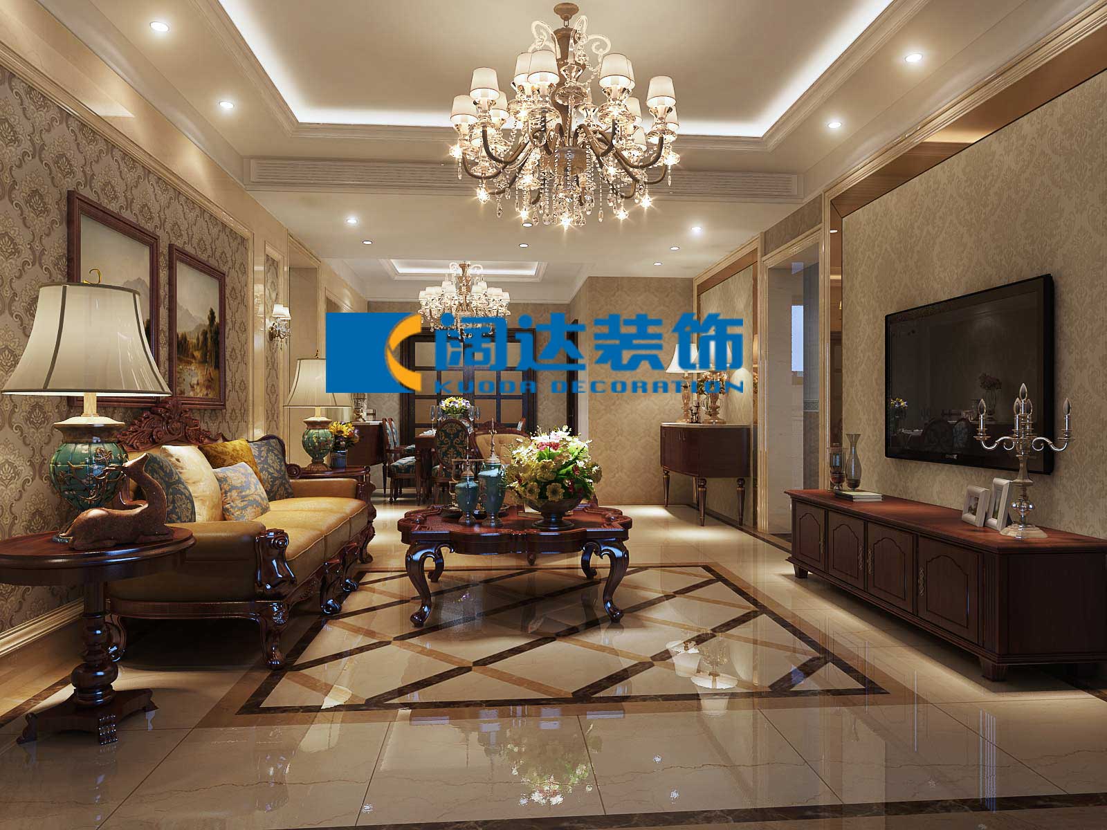 本案例采用歐式設計風格,通過整體色彩及家具的搭配營造自然、舒適、高雅的生活氛圍,此設計案例也在相當程度上表現出其居住者的品位、愛好和生活價值觀。