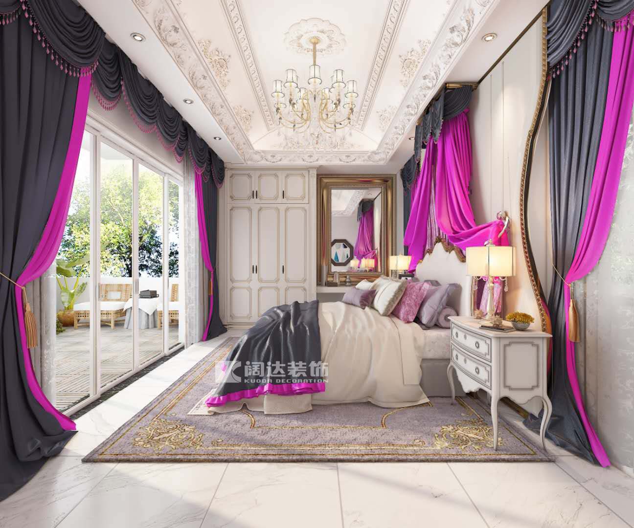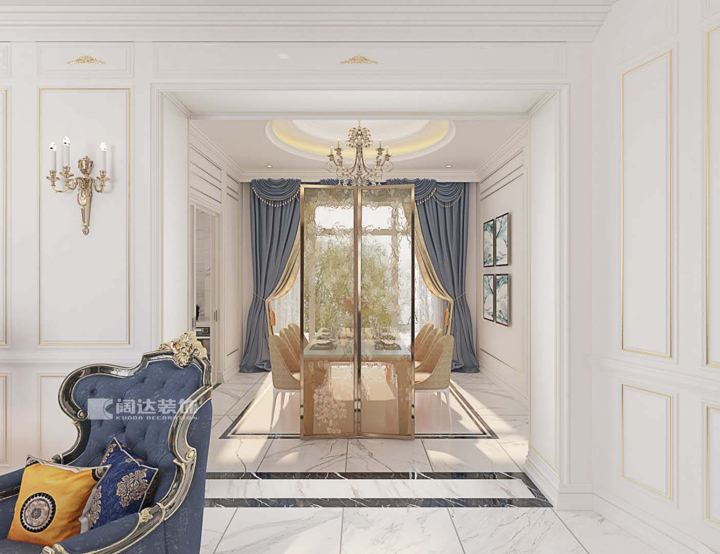 本案設計為法式風格,法式雕花和線條的運用,凸顯出空間的奢華感和貴族氣息,家居軟裝的色彩搭配,讓家有了舒適和浪漫的情調,從傳統的繁奢到現代的簡練;從巴洛克的奢華到洛可可的纖細;從新古典的曼妙到帝政風格的恢弘,她不僅是一門藝術,也象征著一種情懷,家,正是如此!