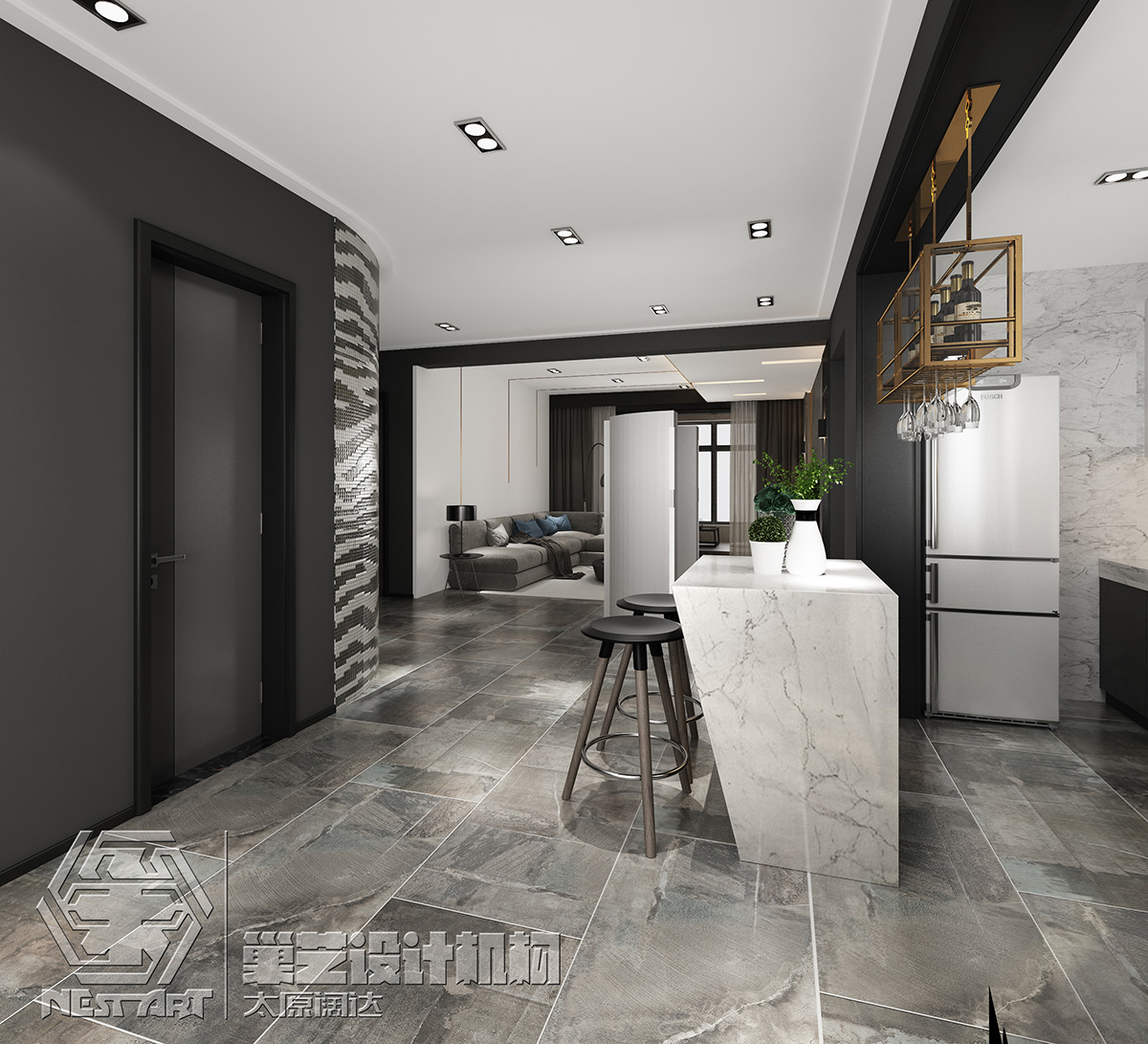居家場域以沉靜色調(diào)為基底,融匯復(fù)合媒材,營造自然質(zhì)樸氛圍;另外亦希望透過重整空間格局,讓室內(nèi)達(dá)到通透敞亮的效果。再將視線移至天花板的特殊結(jié)構(gòu)設(shè)計,除劃分不同場域及活動范疇,同時創(chuàng)造了視覺的延展性及豐富性。客廳與餐廳在此流動空間的設(shè)計下,無形間促進(jìn)家人情感的共享與交流;并于百葉窗開掩時的光暈映照下,灑落一抹靜謐柔美,形塑家的溫馨暖韻。同風(fēng)格案例:更多>>