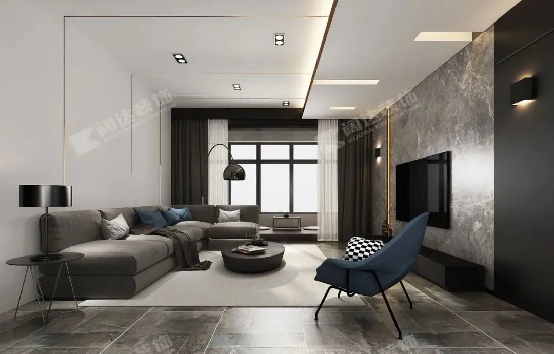 沙發茶幾地毯居中,給在此間的人足以縱覽全屋的視角,又可將窗外風景盡收眼底,臨摹生活最舒適自在的場景。