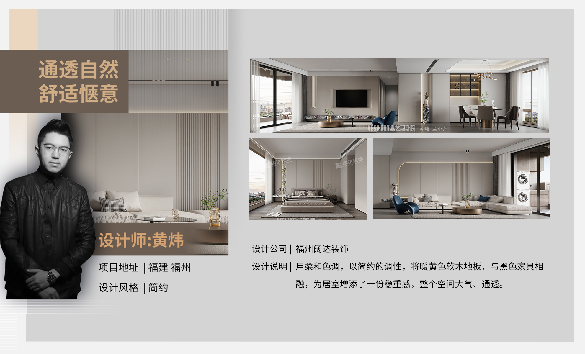 中性配色方案或自然柔和的色調 ,以簡約、充滿活力的調性,全屋通鋪暖黃色軟木地板,與黑色家具相融,增添一份穩重感,大氣又顯空間通透。