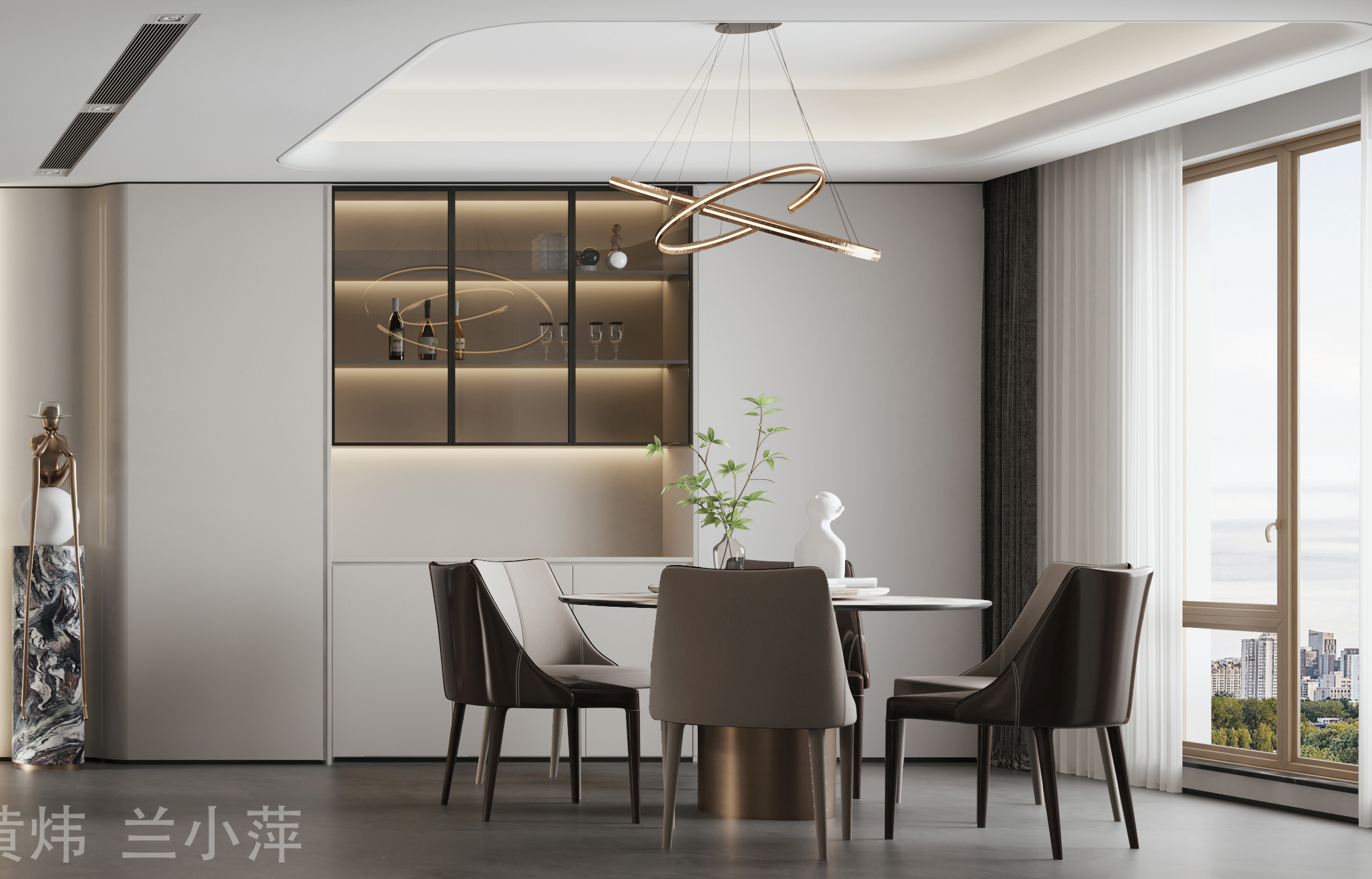 廚房區設計隱藏式推拉移門,增加了餐廚區空間延展性,也使烹飪空間更加靈活,餐廳區域空調冷氣使得廚房更加舒適。