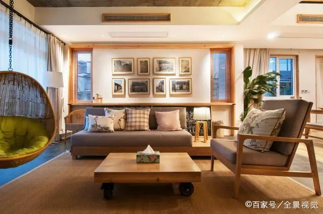 會客廳運用木質和淺色棉麻材質結合,家具可以選用充滿中式古韻設計的沙發、桌椅、茶幾,帶著濃厚的東方清雅格調,體現著人與自然和諧相處的態度。